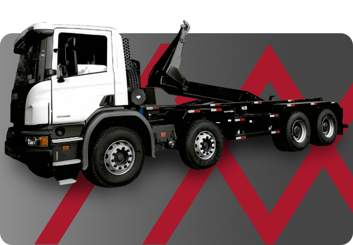 Projetada para caminhões 8×4 e 8×2, com desempenho otimizado para içar, bascular e distribuir carga com eficiência.